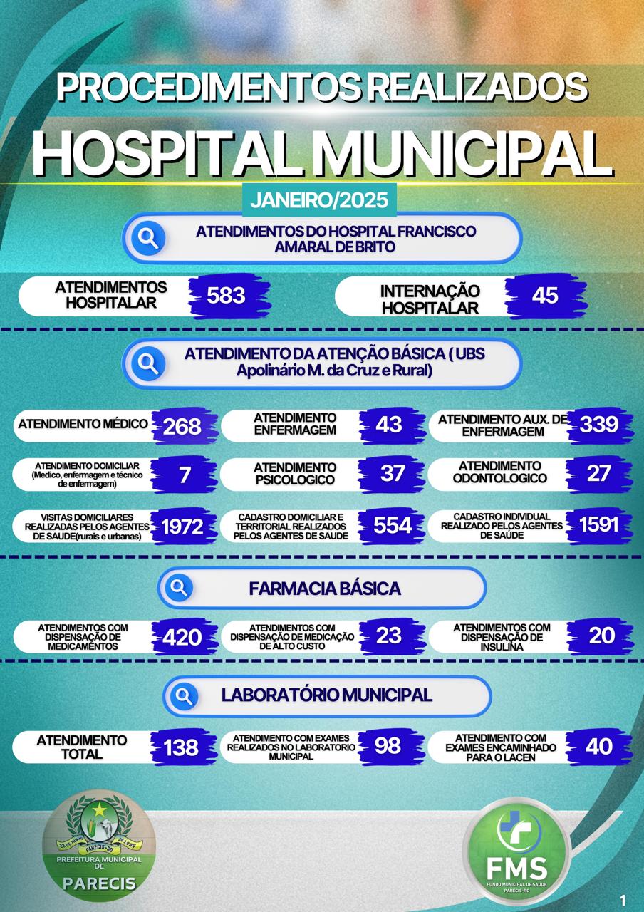 PROCEDIMENTOS REALIZADOS HOSPITAL MUNICIPAL MÊS DE JANEIRO