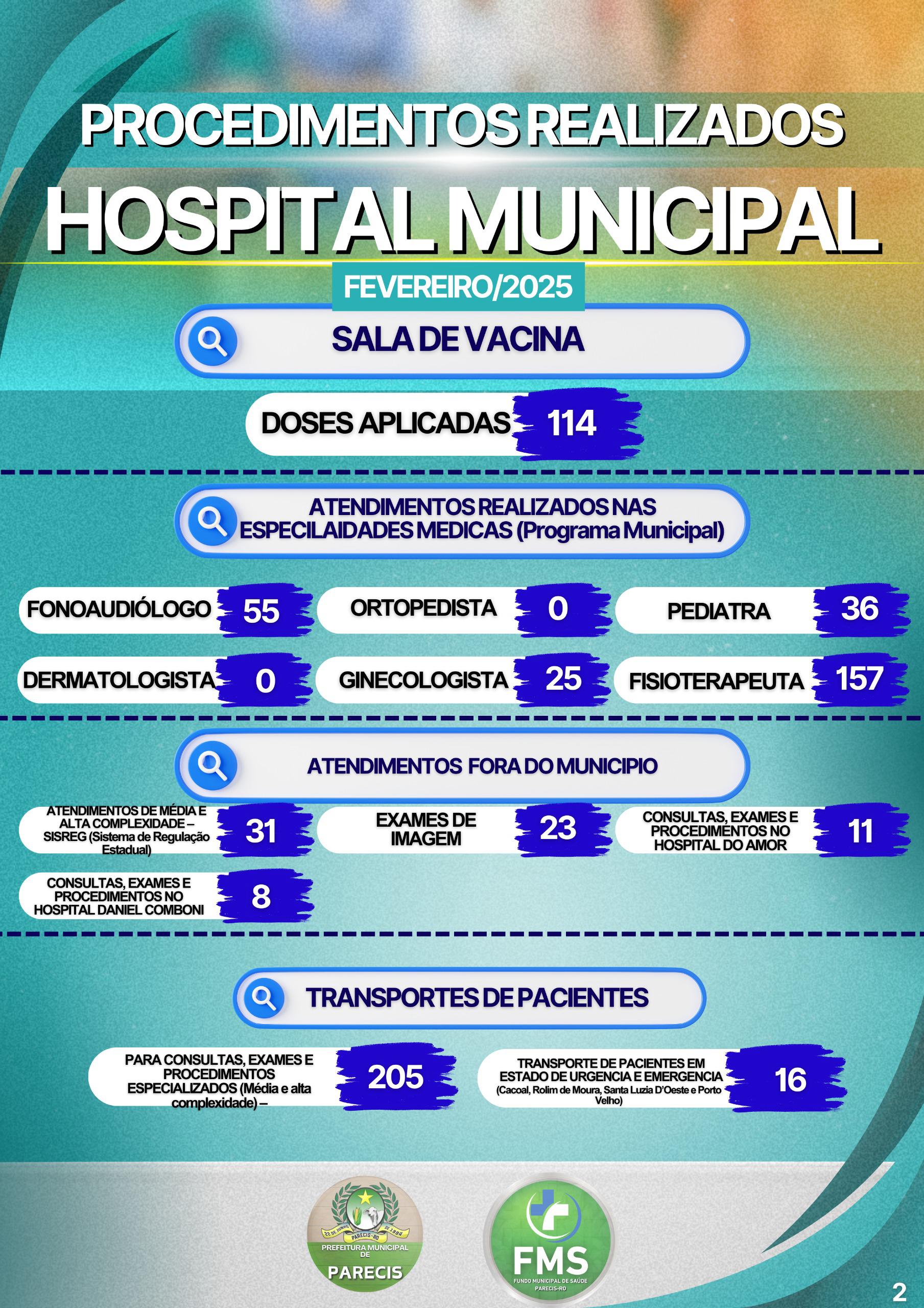 PROCEDIMENTOS REALIZADOS HOSPITAL MUNICIPAL MÊS DE FEVEREIRO